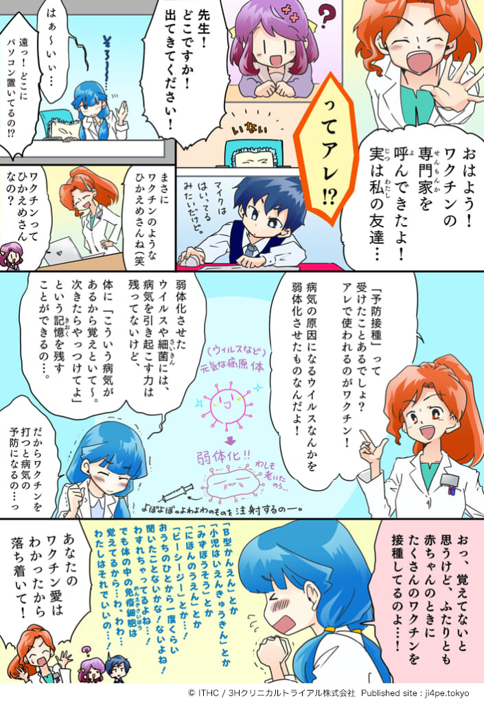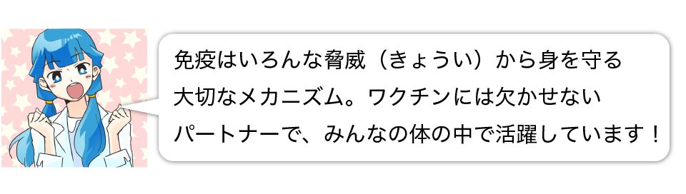 感染症VS人類!ワクチン開発は戦いの歴史! ワクチンとは自分の免疫力を強くして病気にならないようにするためのものです。昔は赤ちゃんや子供など、感染症によってたくさんの人が無くなっていた時代がありました。ワクチンは感染症に対抗するために古くから使われており、多くの人が亡くなったり、障害が残ったりするこわい病気を人類が克服(こくふく)するのに大きく役立っています。
