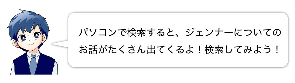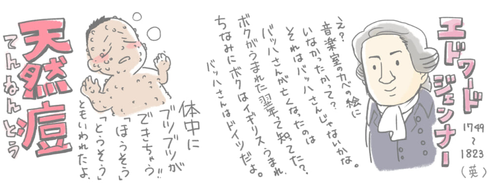 *ジェンナーのエピソードを知らない子が置いて行かれないよう、お話のように膨らませてみました。